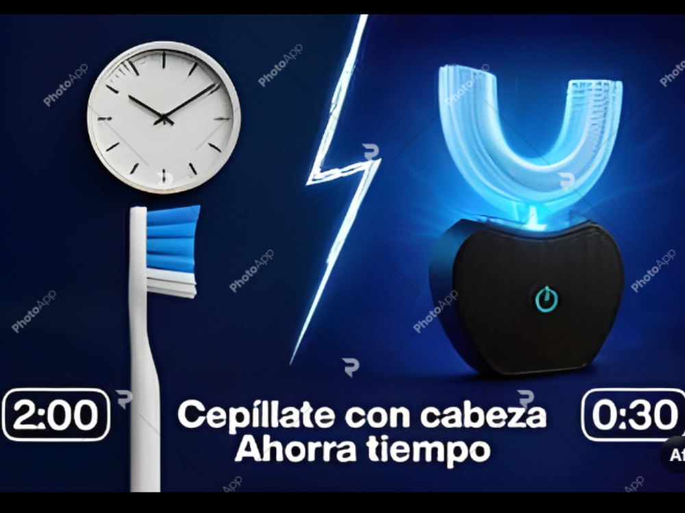 Es un dispositivo inteligente que limpia todos tus dientes simultáneamente gracias a su diseño en forma de “U” y tecnología de cepillado sónico. Ahorra tiempo y ofrece una limpieza profunda en segundos.